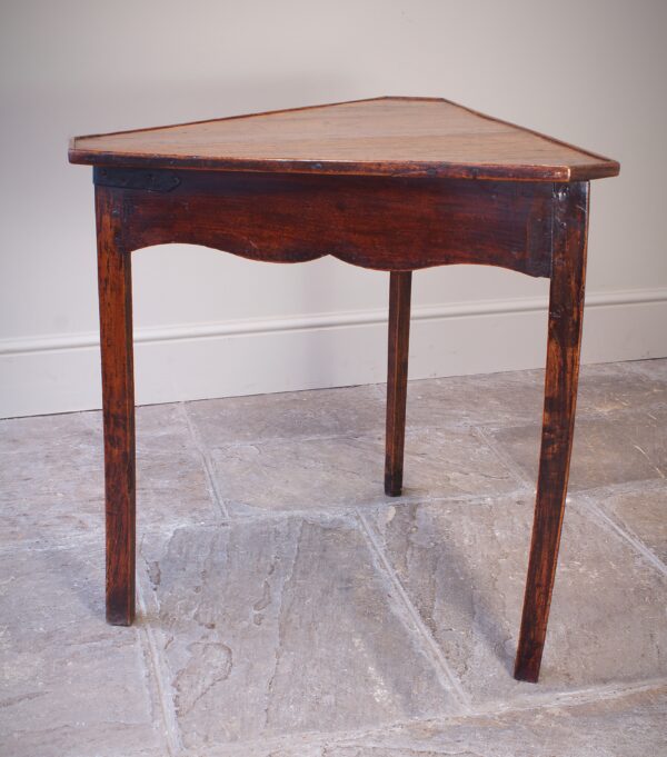 A rare and unusual cricket table with the original triangular top. Having a two-piece cockbeaded top supported on a three-legged base with ogee-shaped rails, all of a good colour and patination.