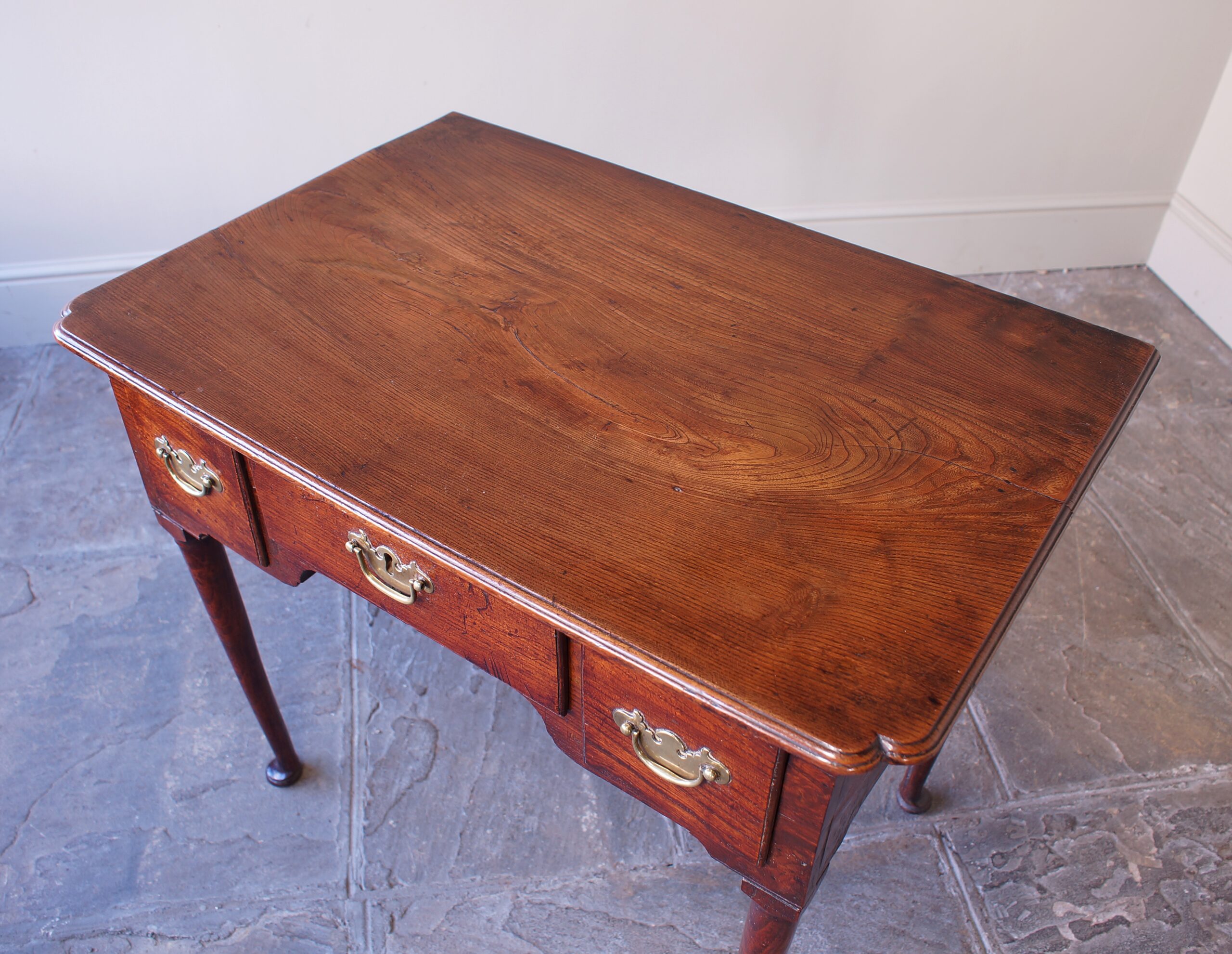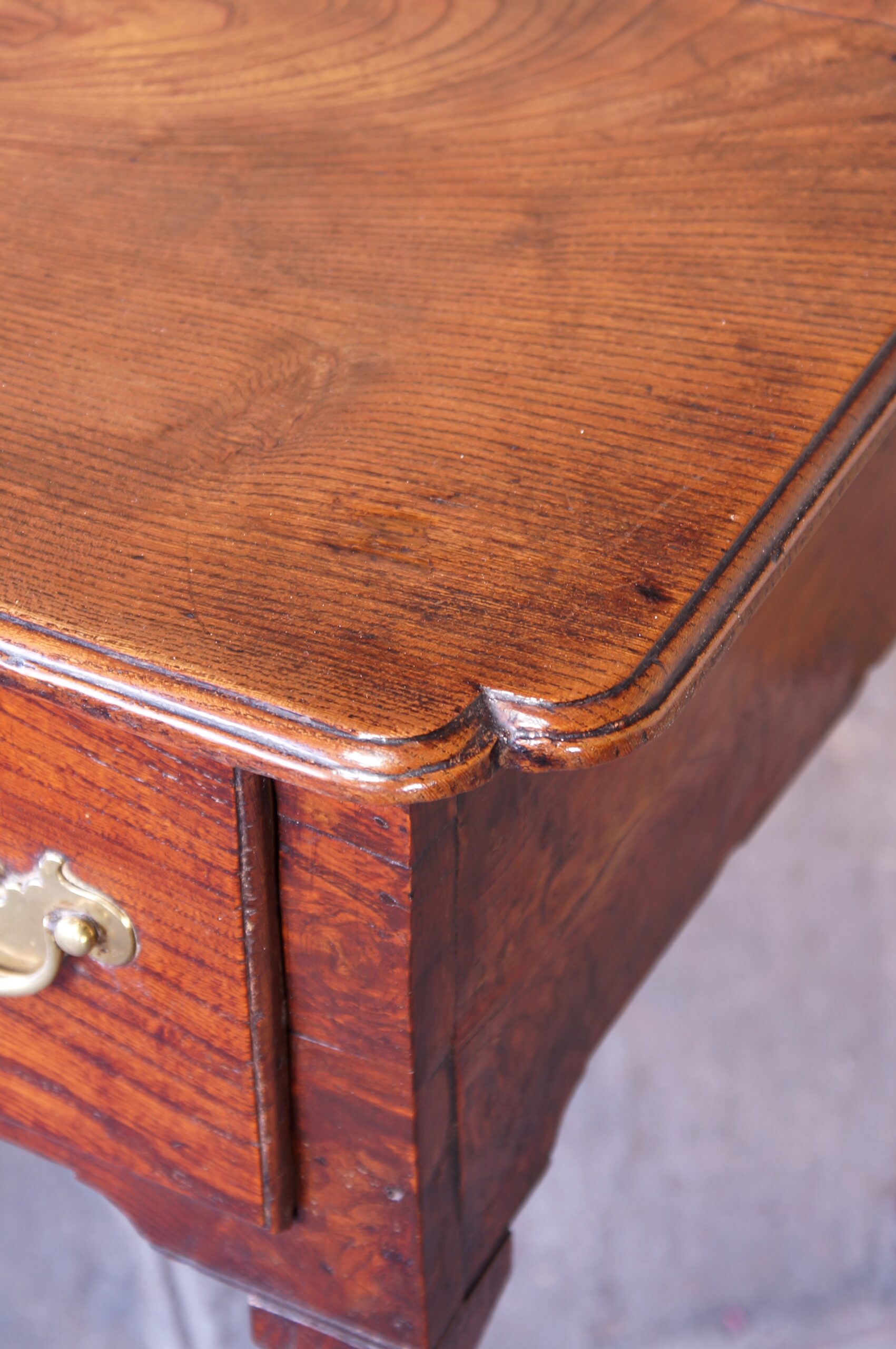 This rare Elm lowboy features a beautifully figured top made from a single wide Elm board, with re-entrant corners on the front.