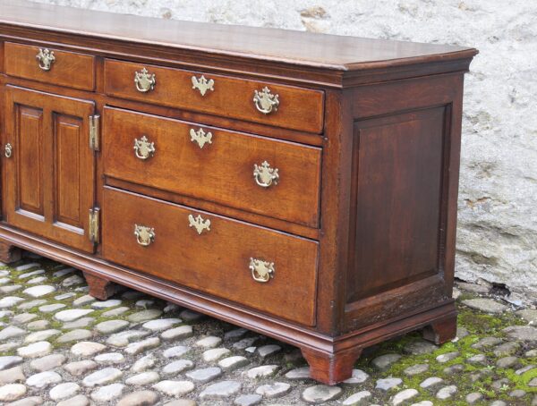 This dresser is of excellent quality with oak lined drawers and having panelled ends and an oak panelled back..
