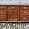 A large Georgian dresser base of an impressive scale and size, having a well-figured top above a central cupboard door with a small drawer above and three graduated drawers to each side. All drawers and the cupboard door are lip moulded and decorated with a walnut feather banding to the edge.