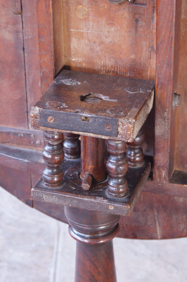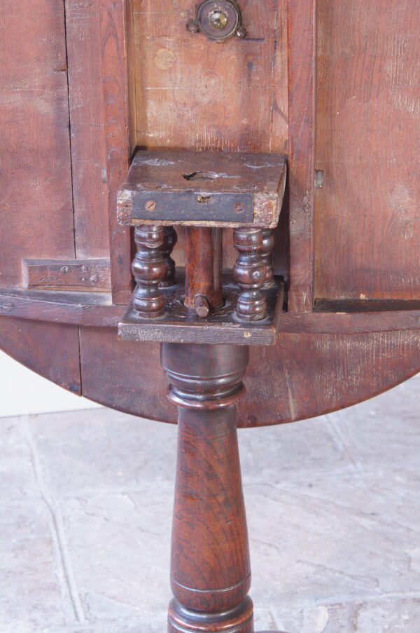 Contemporary inventories indicate that tripod tables were constructed from a variety of timbers, but due to the susceptibility of Elm, Fruitwood, and Walnut examples to damp conditions and insect attack, few have survived.
